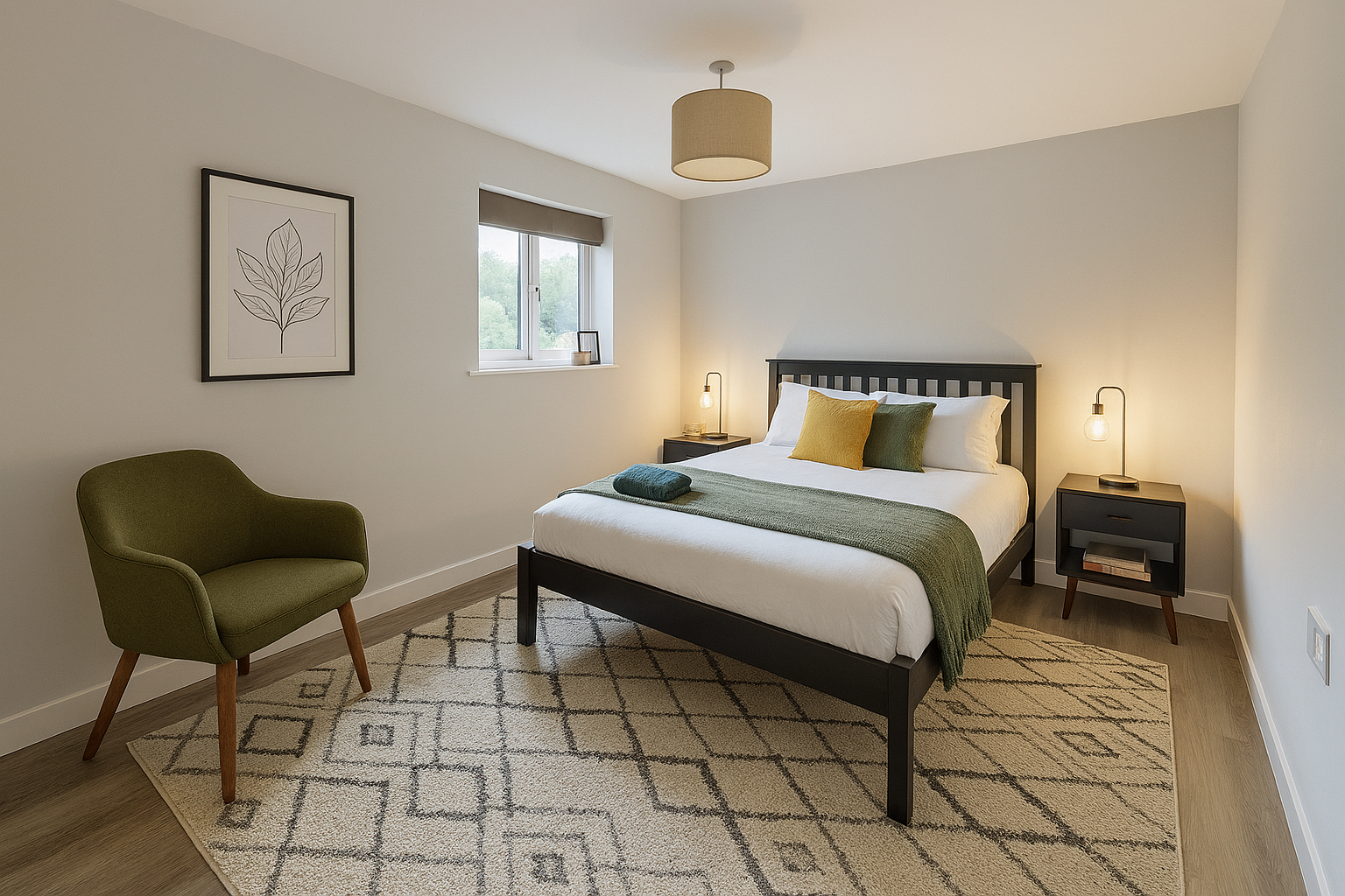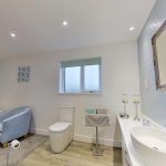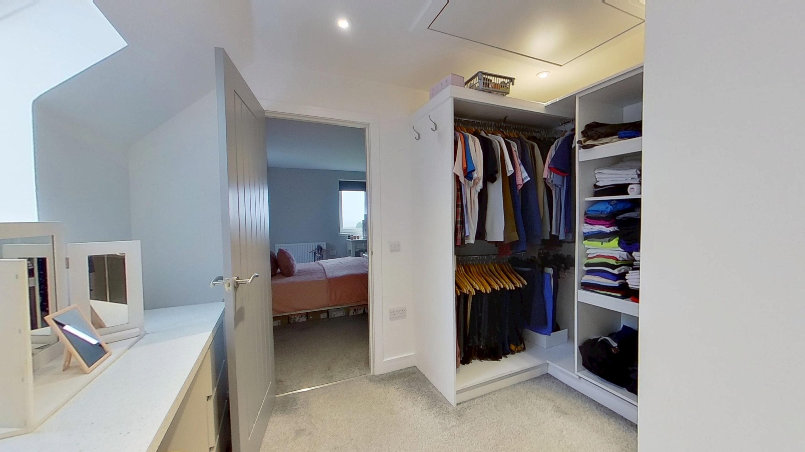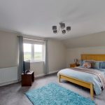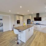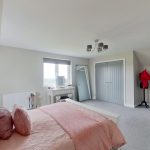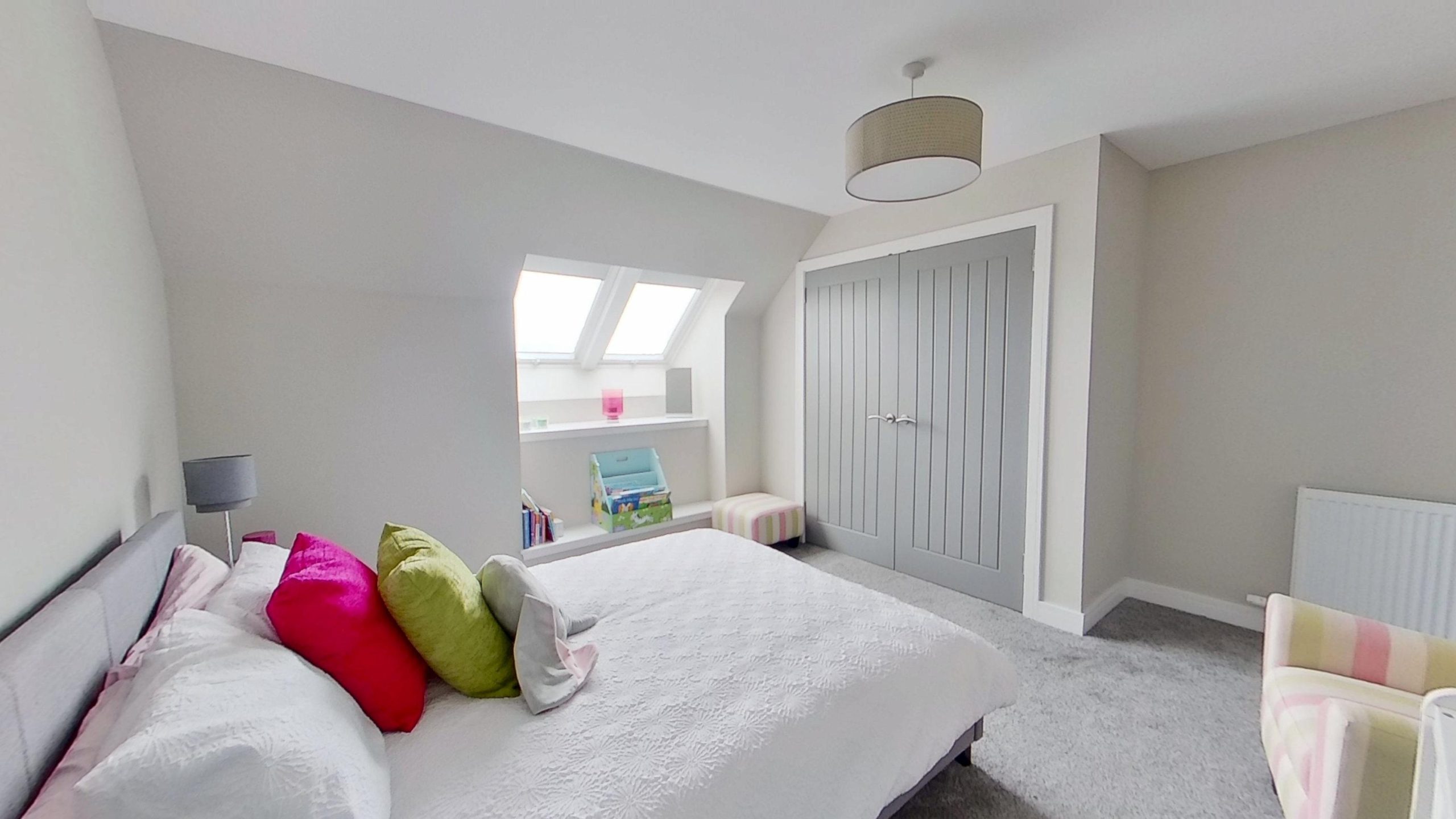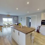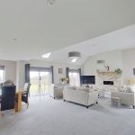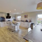 Entering through the front porch, you’re welcomed into a bright and spacious hallway with access to the garage and a staircase leading to the first floor. The ground floor includes a spacious double bedroom and a generous bathroom, complete with roll-top bath. At the heart of the home is a desirable open-plan kitchen and dining space, finished in neutral tones and featuring a large island with breakfast bar, integrated appliances including a five-ring Calor gas hob, extractor hood, double oven tower, combination oven, warming drawer, integrated fridge, freezer, and dishwasher. Patio doors along with a further single door lead to the garden, and the generous dining area is ideal for family gatherings.