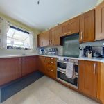 The kitchen has a good range of upper and lower cabinets, plus integrated appliances including fridge/freezer, washing machine, dishwasher and double oven with induction hob, above which is a glass backsplash and extractor fan. A one-and-a-half stainless-steel sink with mixer taps and drainer, sits beneath the window looking out to the beautifully landscaped rear garden. Wet-wall backsplash around the kitchen walls. Curtain pole, curtains.