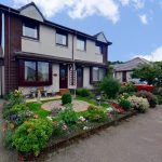 A beautifully designed front garden which showcases the time and love which has been dedicated to it. An area of lawn has been inset with an ornate, circular, paved area with a dwarf conifer in the centre. Pretty planting beds contain roses and a range of other colourful shrubs and flowers such as pansies, lilies and geraniums. A hedge runs the length of the driveway, bordering the neighbouring property. There is a paved path along the side of the house, leading to the rear garden through a high metal gate, and a further path leads to tiled steps at the front door.