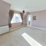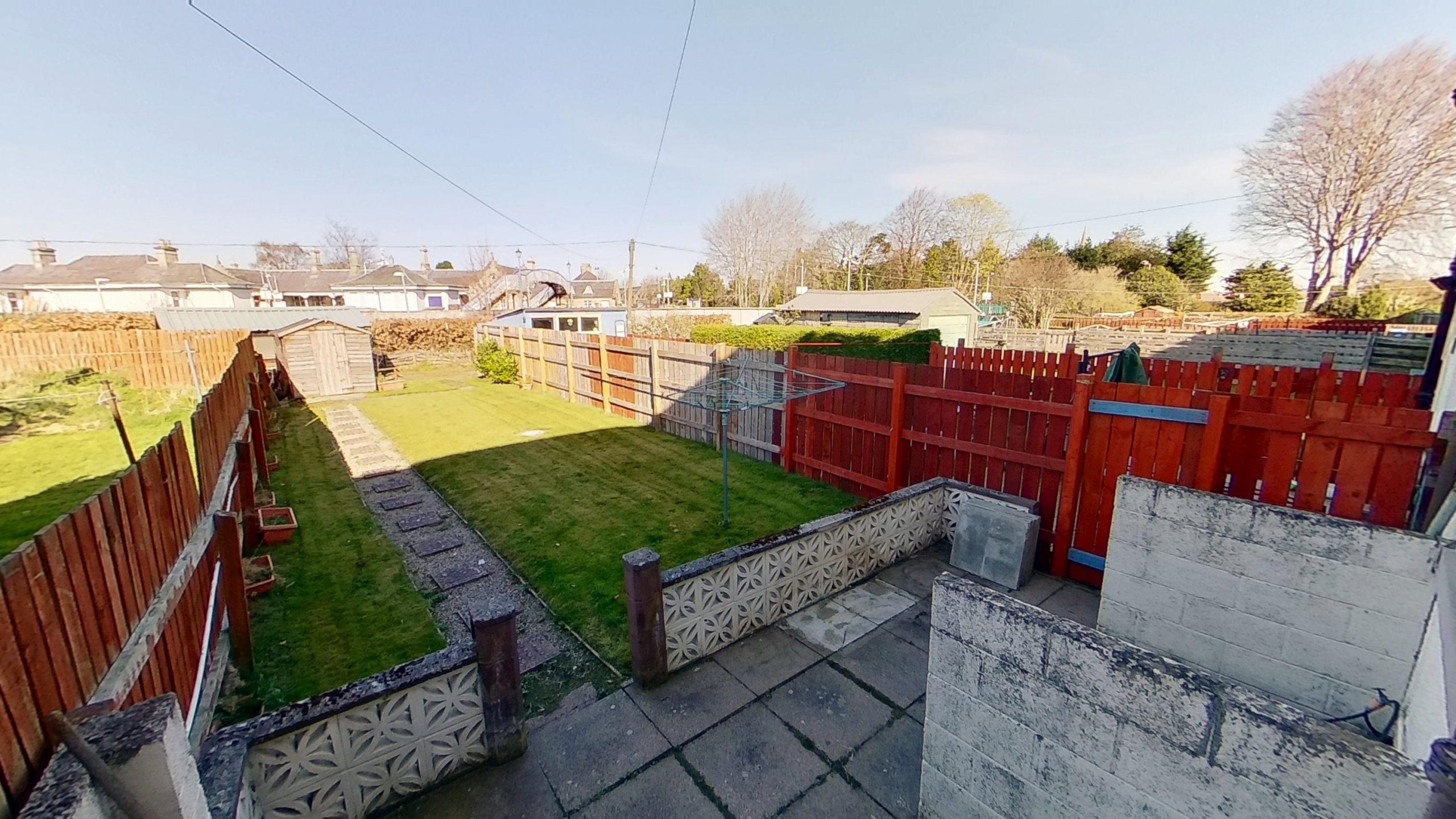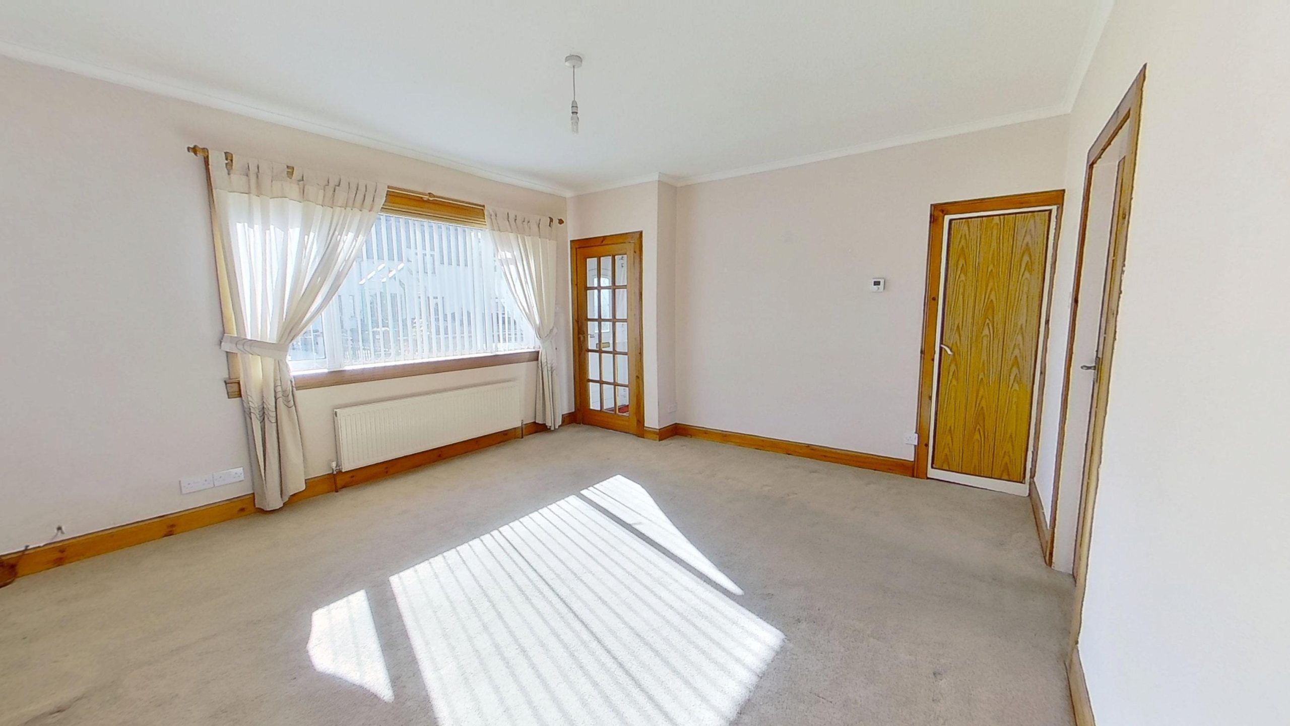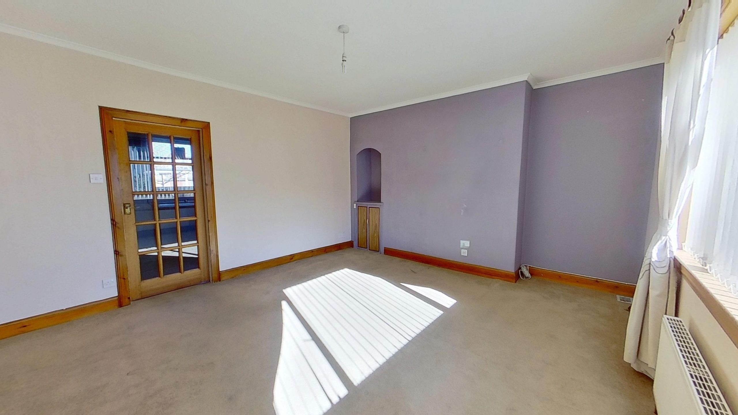 Inside, the accommodation is light and airy, with a spacious lounge to the front featuring a blocked-off chimney breast allowing the option for those wishing to reintroduce a fireplace or stove. To the rear is a good-sized kitchen with ample space for dining and two pantry cupboards providing excellent extra storage. A rear door leads directly out to the garden, making this a functional and well-thought-out space.