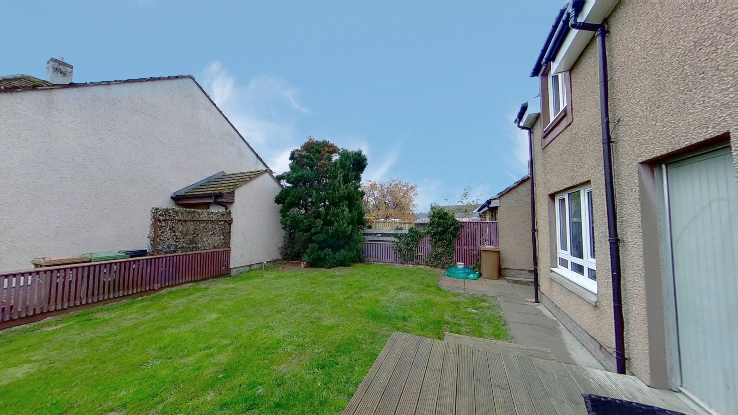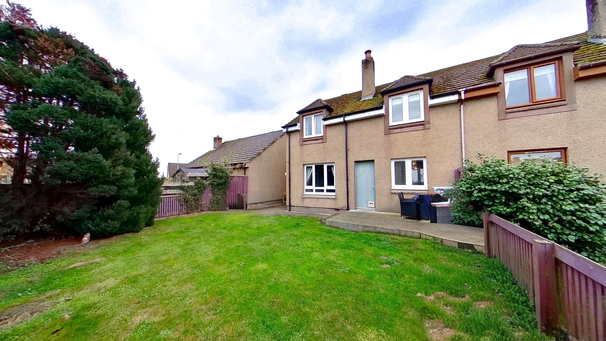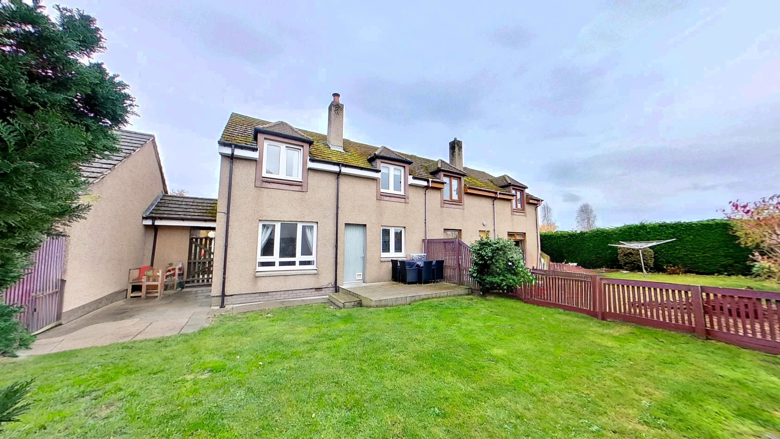 Situated in the popular village of Auldearn, just two miles from the charming seaside town of Nairn, this well-presented two-bedroom semi-detached home offers a host of benefits, and appeal for first-time buyers. Externally, the property boasts ample communal parking and a fully enclosed rear garden with a lawn and a decked area. Two full-height external stores provide excellent outdoor storage for garden furniture, outdoor toys and bikes.Step through the timber front door into a spacious hallway with wood-effect laminate flooring and a carpeted staircase leading to the first floor. A large walk-in cupboard offers convenient space for coats, shoes, and everyday items, and houses the electric circuit unit.