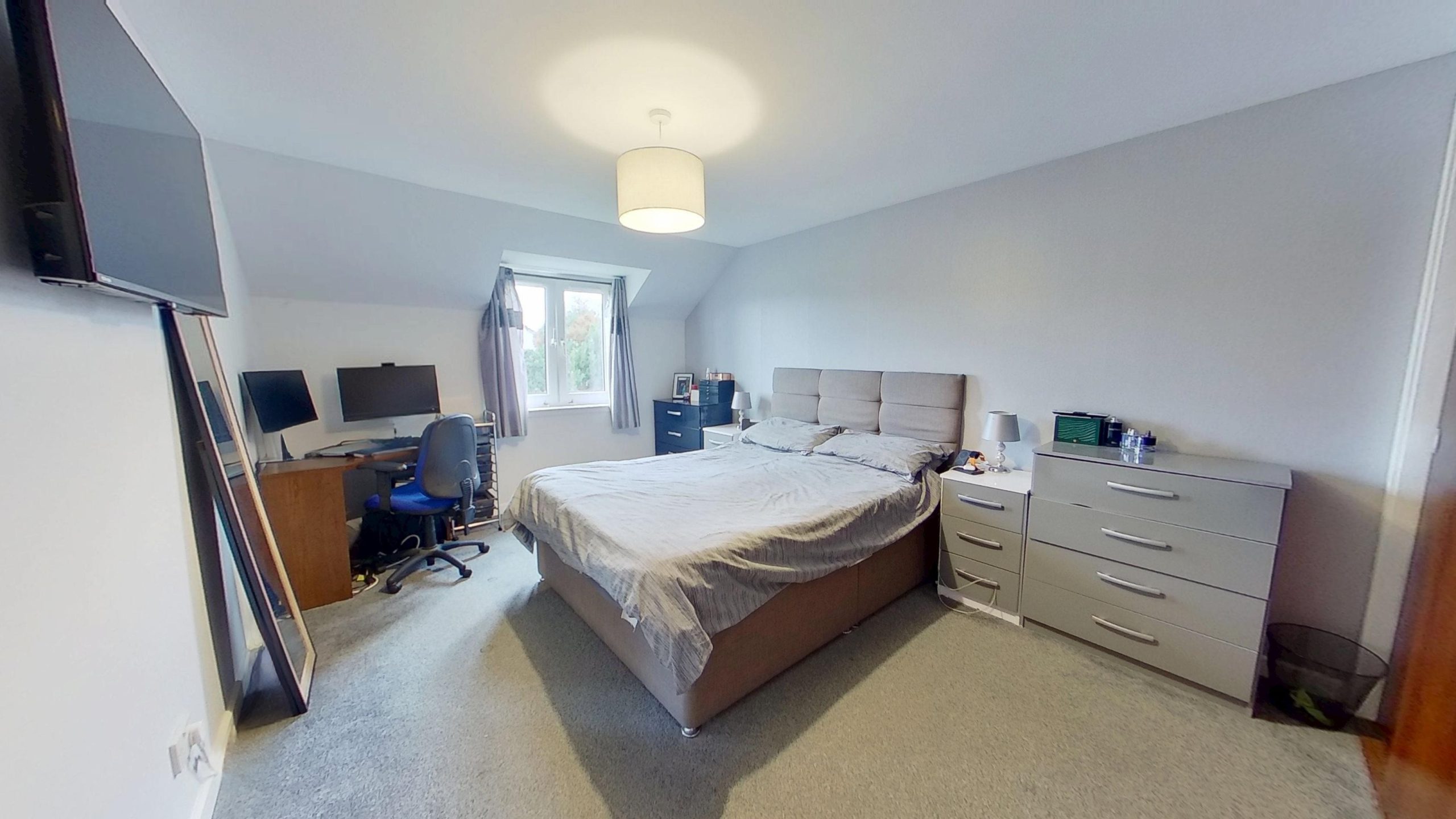 Bedroom two is another generous double, also carpeted, with two excellent full-height cupboards.