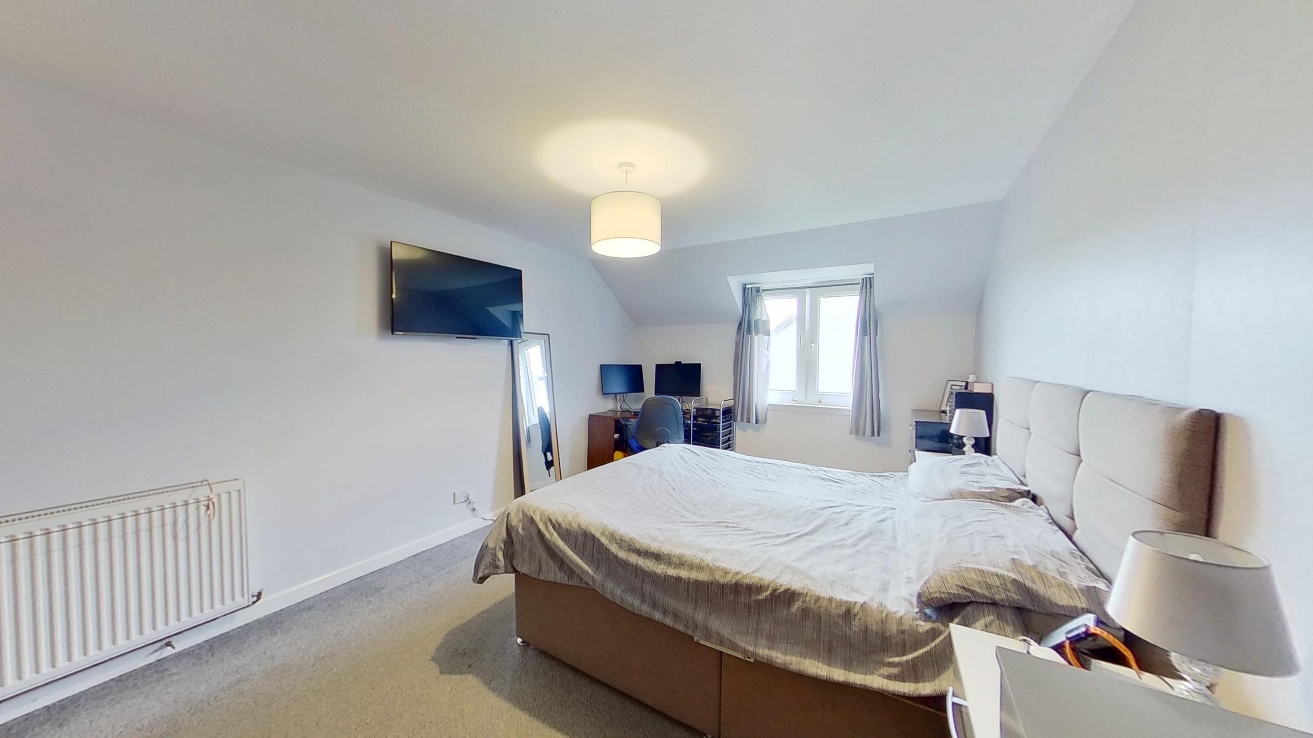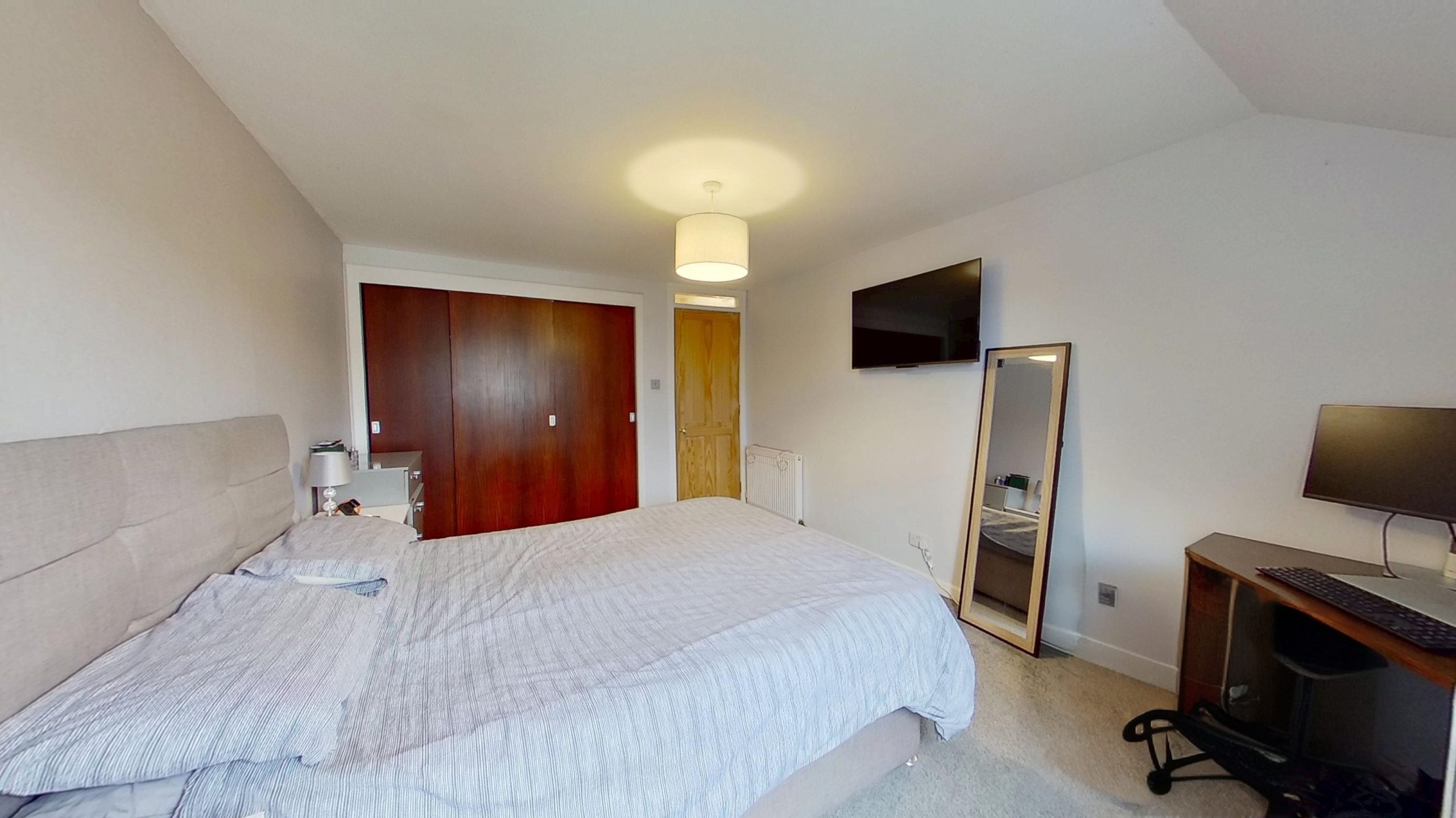 Bedroom one is a spacious double with a rear aspect, laid with carpet and fitted with triple sliding door wardrobes.