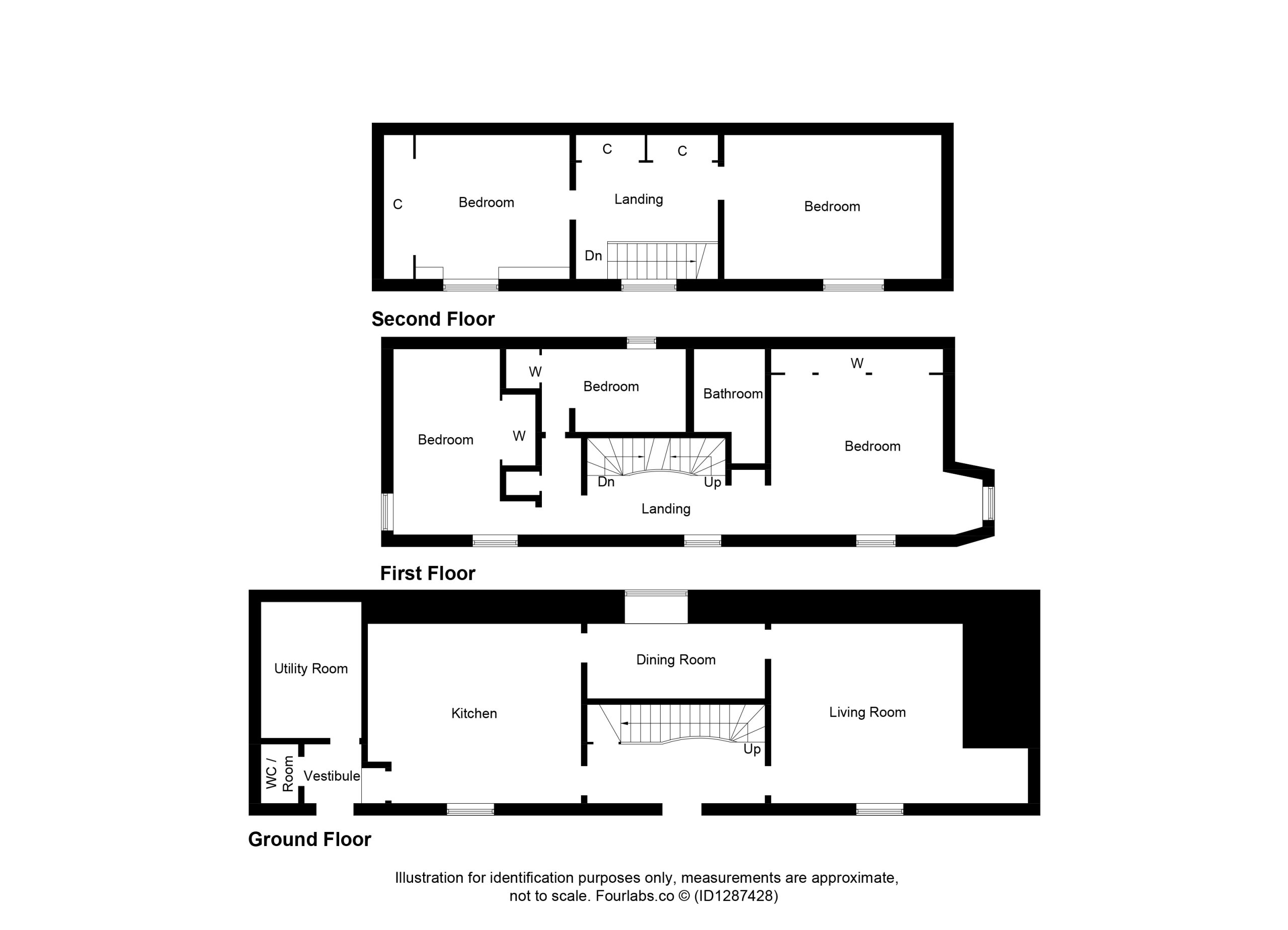 The generous accommodation is across three floors, with the living room, dining room/office, kitchen, utility room and WC on the ground floor, three double bedrooms and the family bathroom on the middle floor, and two further double bedrooms on the top floor. Private, enclosed, front and side gardens and driveway for multiple cars complete the picture.