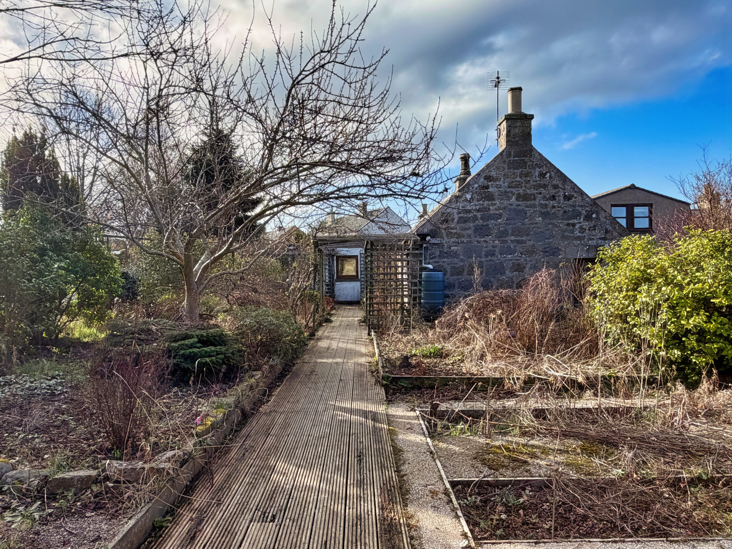 A delightful 3 bed, detached cottage with a spacious living room and kitchen. A true gem of a cottage set in remarkably large enclosed gardens, hidden from the road in a popular residential area in Elgin.This wonderful cottage would make a lovely family home or first time buy. A bright hallway leads to the shower room, kitchen, living room and to the bedrooms. The delightful, L shaped, dual aspect kitchen, has the most remarkable views into the garden teaming with colour. With a wide range of lower and upper cabinets, integrated oven and gas hob, space for an under counter fridge, washing machine and tumble drier, the kitchen is a convenient size. In the main part of the cottage there are 2 double bedrooms, 1 with beautiful garden views. The dual aspect living room is a comfortable size with an open fireplace and room for a dining suite.