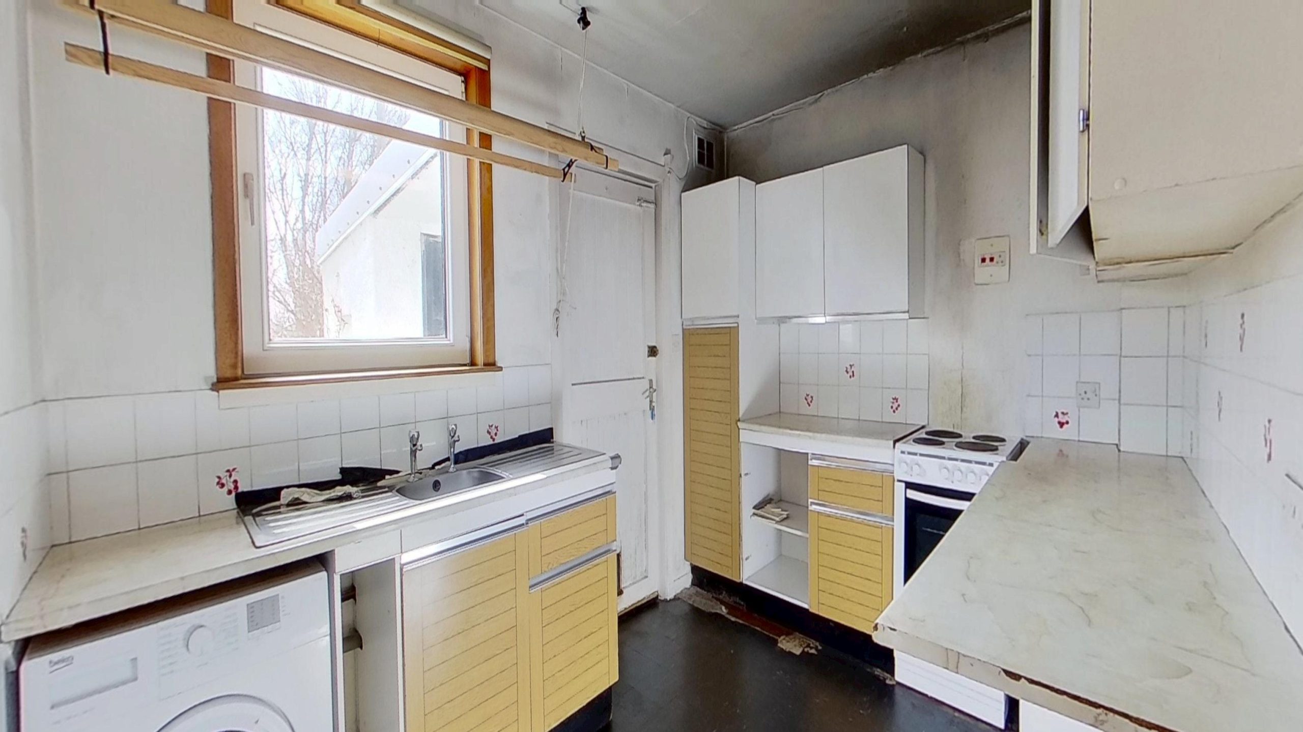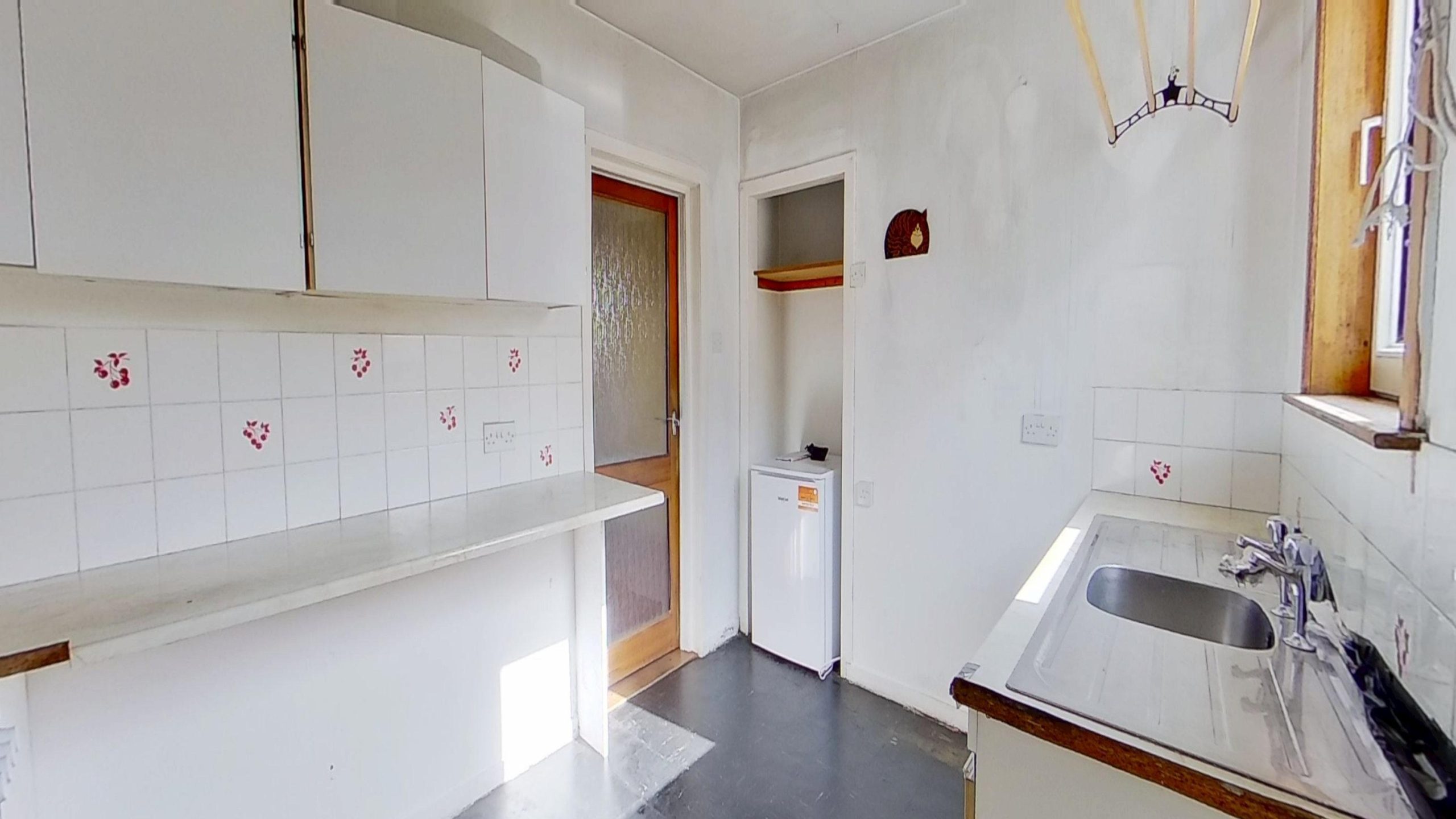 A door leads through to the kitchen, which has good potential with a window overlooking the Beauly Firth allowing lots of daylight to flood in, and a door providing access to the rear garden.