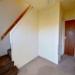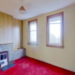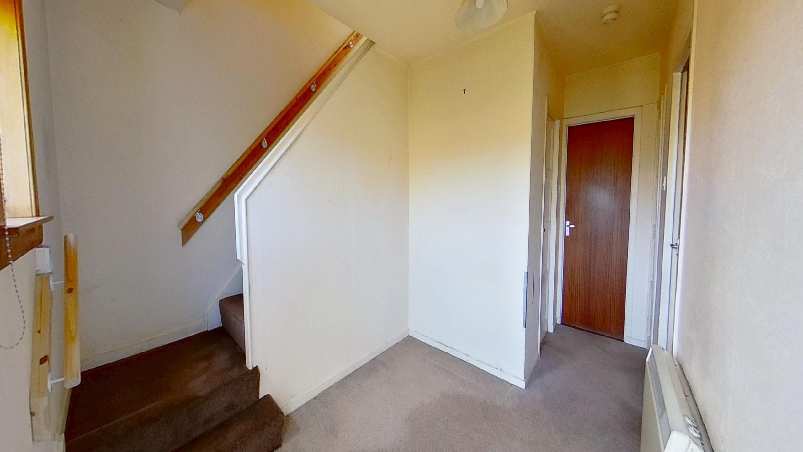 A glazed uPVC front door opens into a very spacious hallway with a useful coat cupboard. The generous lounge sits to the front of the house, and features two windows, carpeting and a Fyffestone fireplace with an open fire.