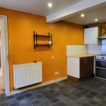 A uPVC front door opens into the hallway, where the staircase rises to the first floor. On the ground level, the kitchen is surprisingly roomy, with two front-facing windows. Currently fitted with limited units, the space offers a blank canvas for a stylish redesign. Next to the kitchen is a dining room, perfectly placed for family meals or entertaining guests. Also on this floor is a generously sized bedroom with en suite, comprising a WC, wash hand basin, and shower cubicle.