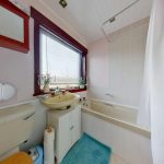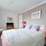 The bathroom contains a 3-piece suite comprising a wash hand basin, WC and bath, with an electric shower above, which is tiled for ease of cleaning. Both double bedrooms have built-in wardrobes with sliding, mirrored doors.