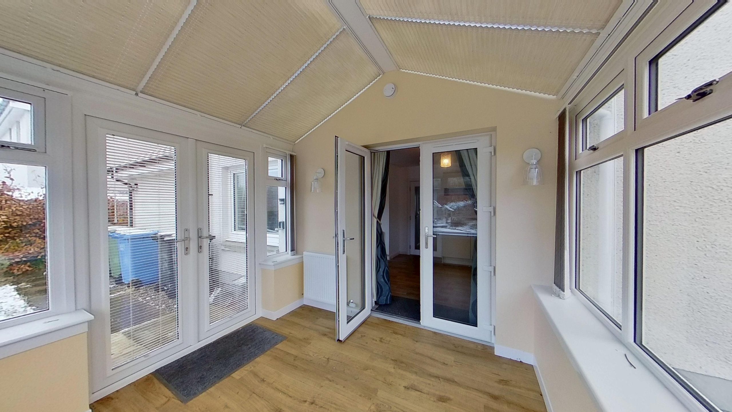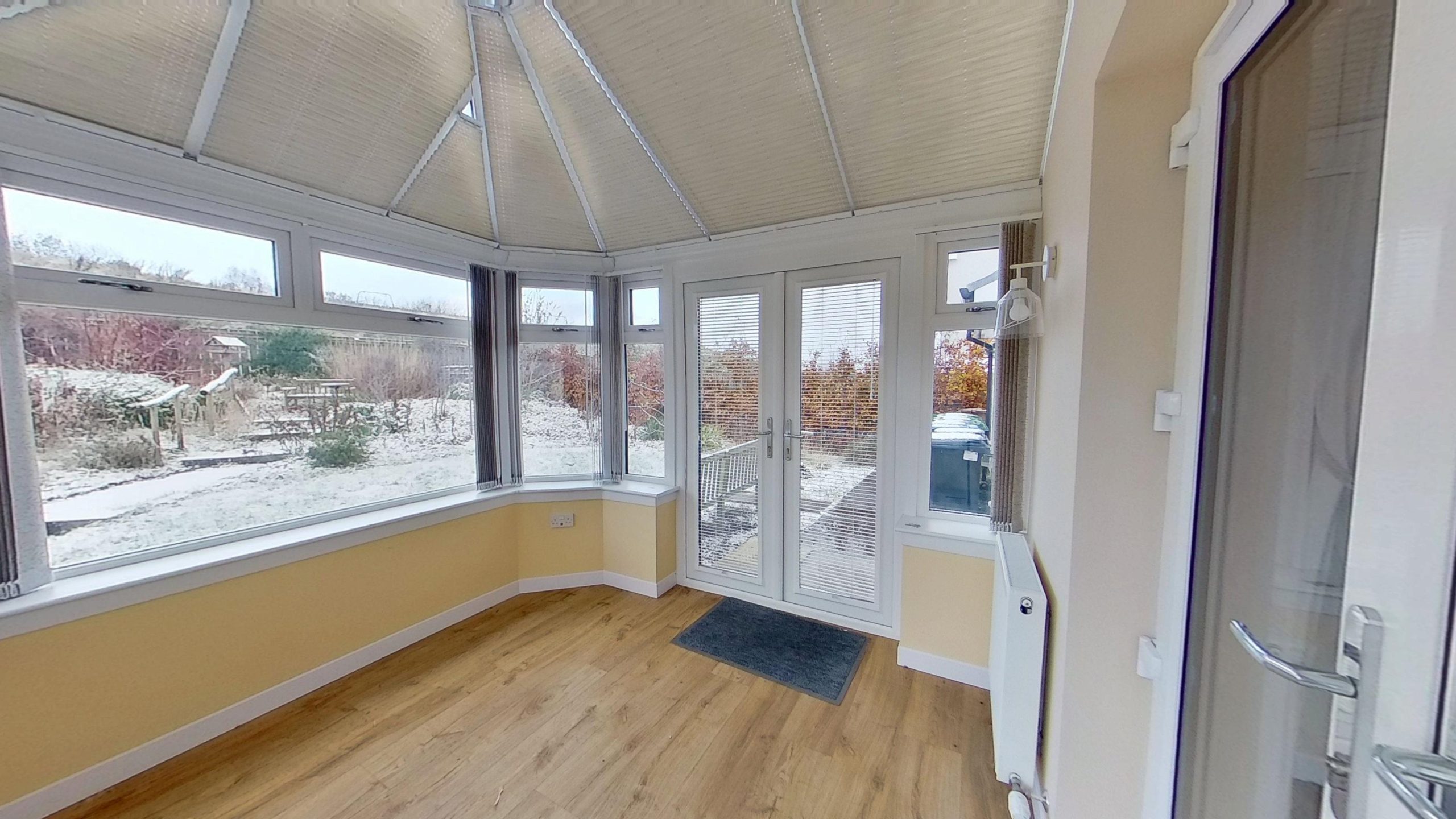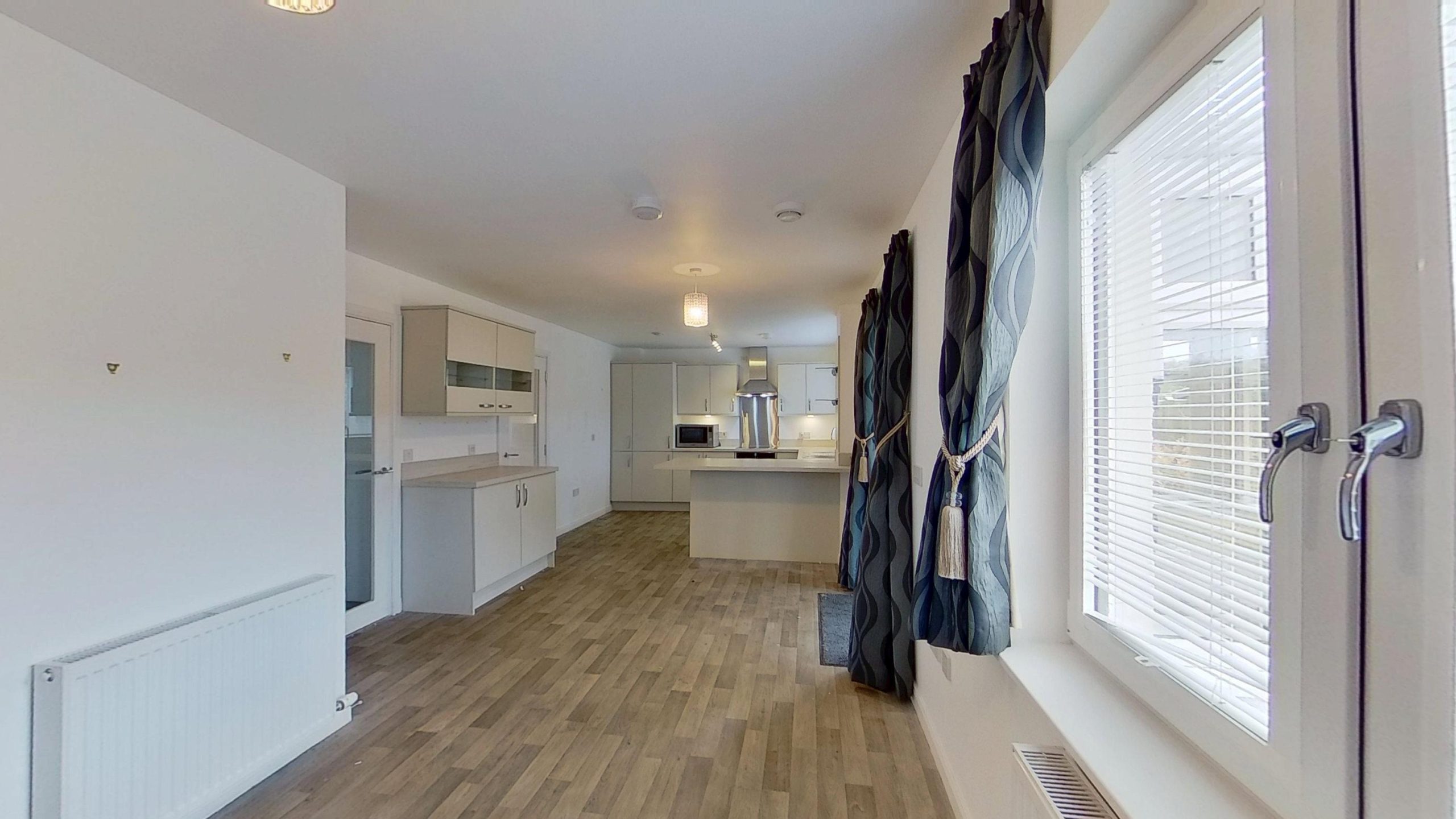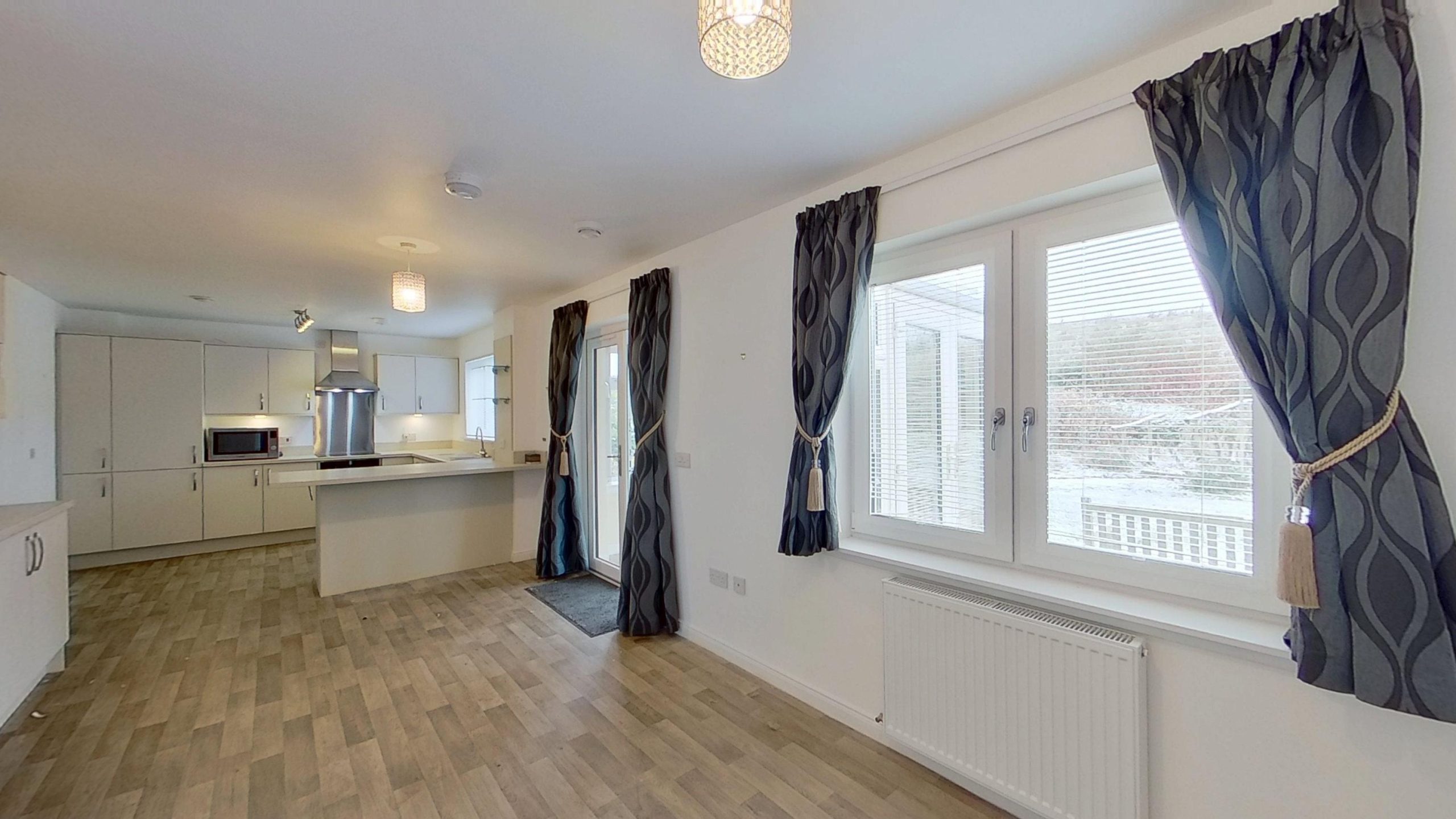 The property itself is designed with family living in mind, offering generous space and a thoughtful layout. On entering, you are greeted by a broad hallway that sets the tone for the rest of the home. To the front, there is a comfortable lounge, perfect for relaxing or entertaining. From here, a door leads to the heart of the home. A spacious open-plan kitchen and dining area that flows seamlessly into the conservatory through French doors, creating a bright and airy space ideal for gatherings and everyday life. The kitchen is modern and well-equipped, fitted with neutral gloss wall and base units complemented by matching worktops and upstand. Appliances include a dishwasher, oven, hob, extractor hood, fridge and freezer. A breakfast bar provides an informal dining space, and also a division between the kitchen and dining area.