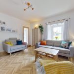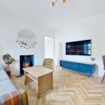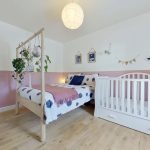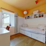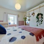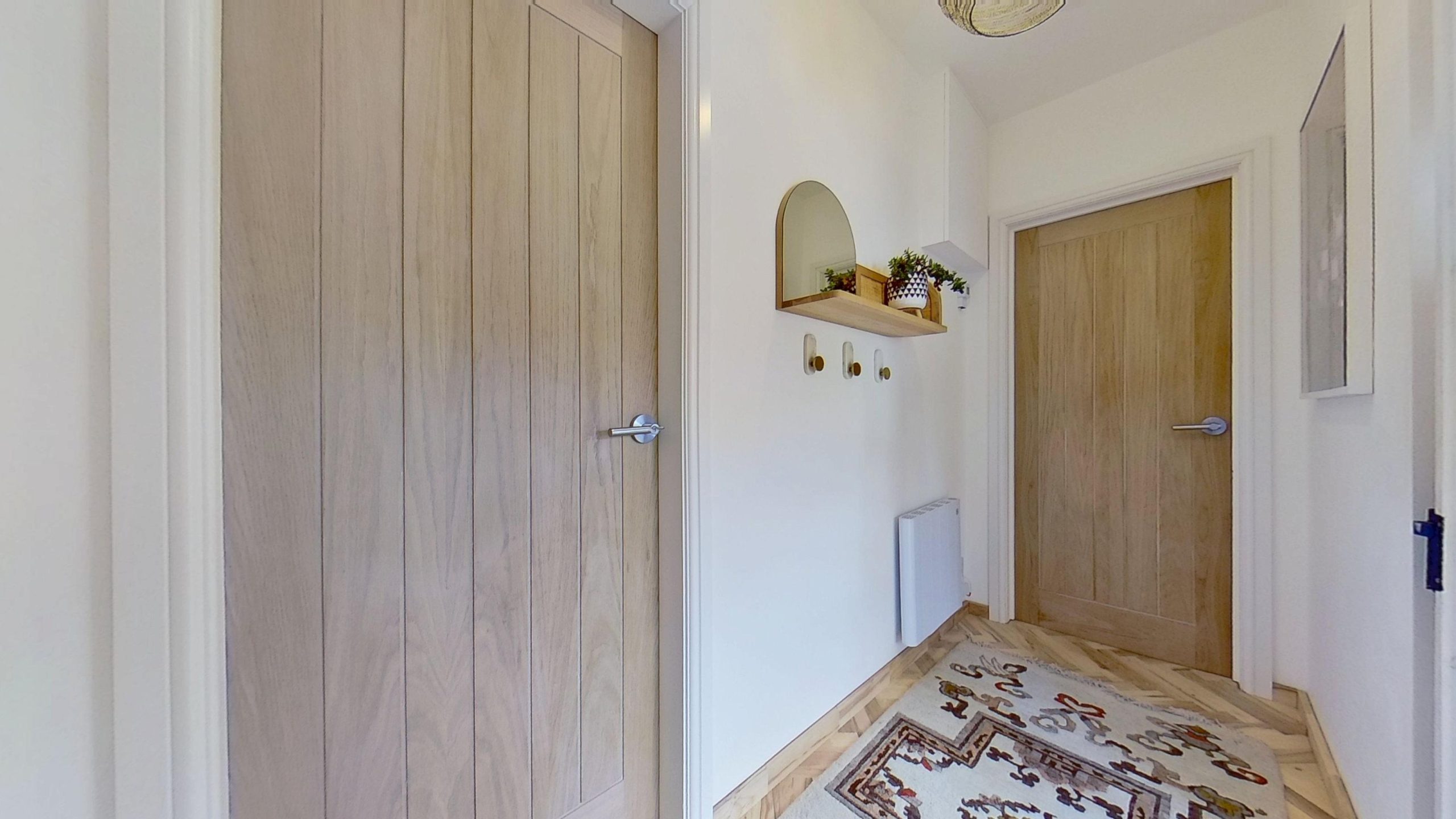 A beautiful double bedroom decorated in calming, pastel, hues. Triple free-standing wardrobes with 2 white sliding doors and one mirror door, seamlessly gift an abundance of storage. Recessed display shelf and front-facing window with deep ledge. Solid wood flooring.