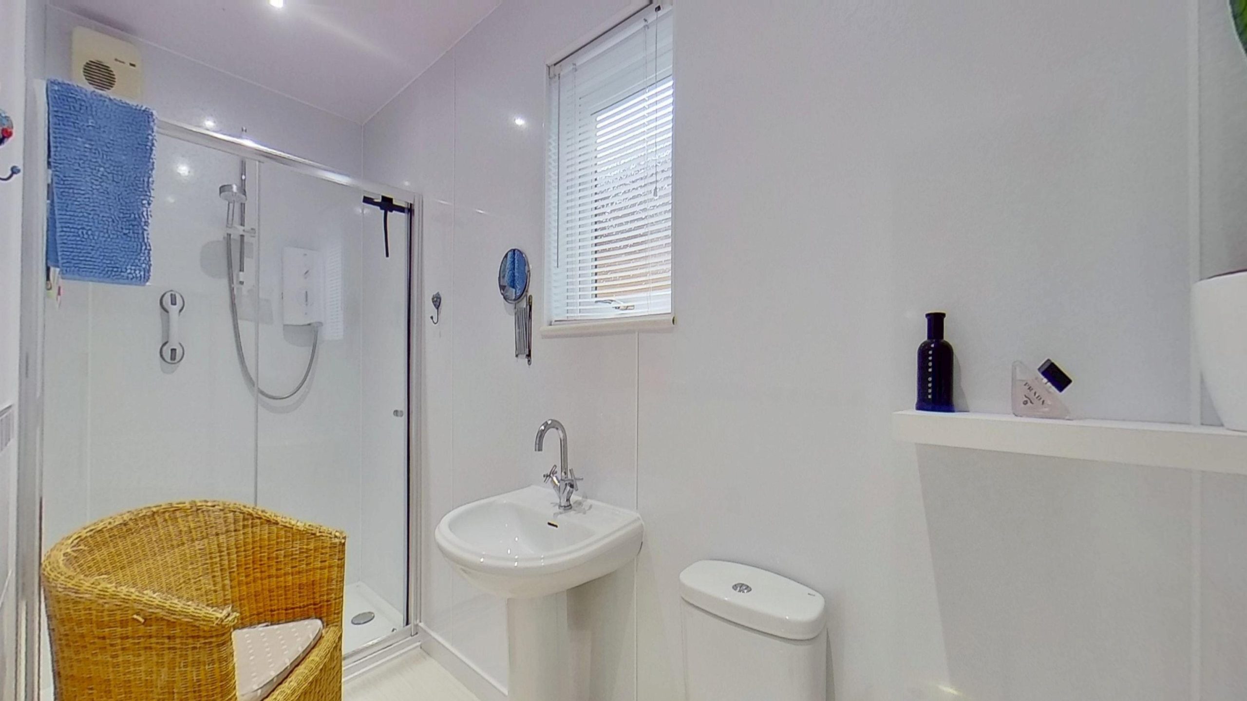The lovely downstairs double bedroom is double aspect, has built-in storage and an especially large ensuite shower room.