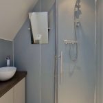From the kitchen, a staircase with modern metal balustrades, leads to an upper double bedroom, with coombed ceilings and lovely views across the grassland beyond.