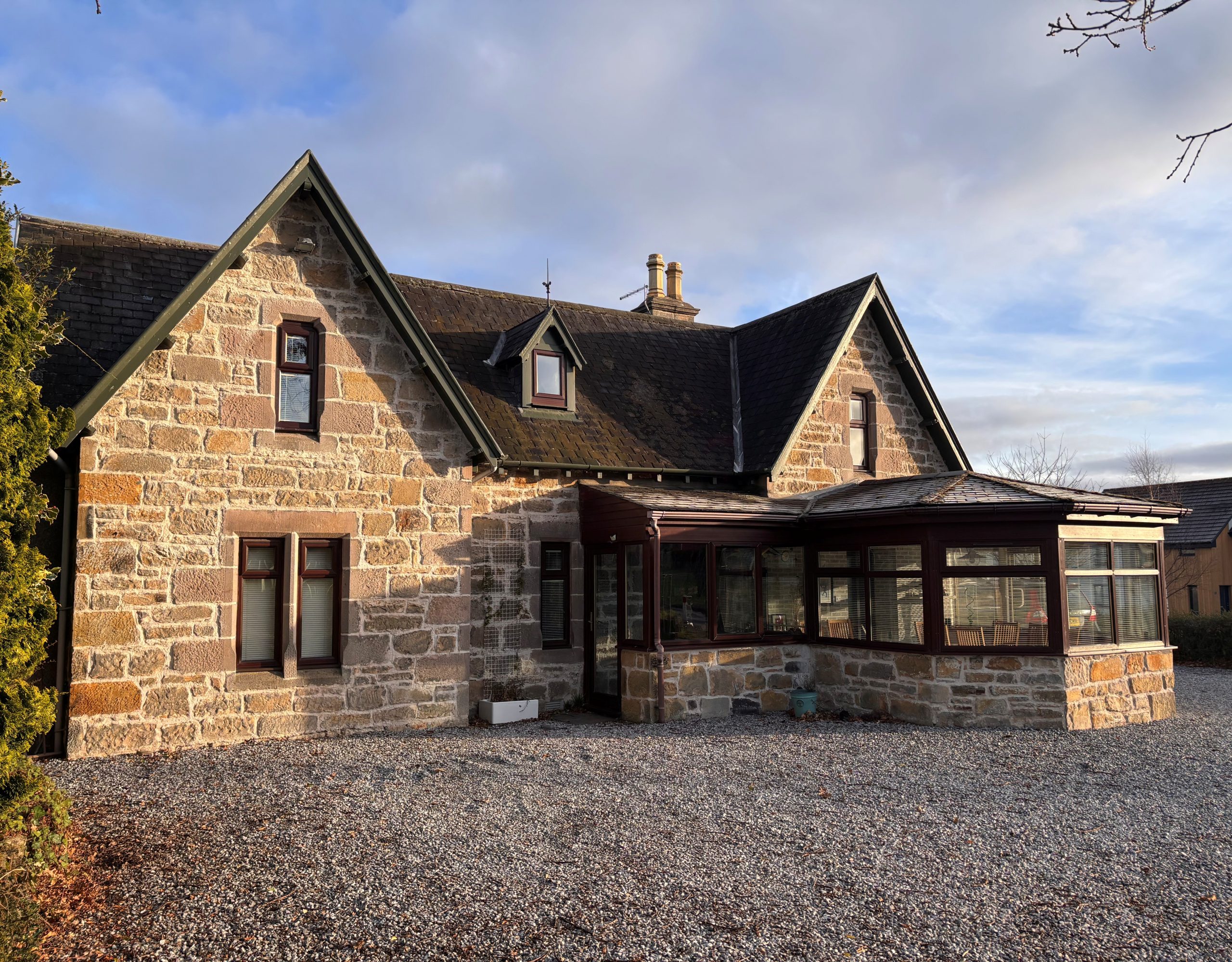 A beautiful, 4-bedroom, character, stone cottage with spacious enclosed gardens, garage and driveway. Situated across from pleasant woodland on the outskirts of Forres, Knockomie Lodge is just a short drive from all the amenities of town such as medical provision, shops, schools and transport links. Loch of Blairs and Altyre Estate are on the doorstep, affording stunning walks and wildlife spotting opportunities.Formerly a successful B&B, this immaculate private residence is exceptionally well appointed and has an abundance of delightful features. The accommodation comprises lounge, sunroom, open-plan kitchen/dining/sitting room, shower room and ensuite double bedroom on the ground floor. Upstairs comprises 3 double bedrooms (one of which is ensuite) and a further shower room. External spaces are generous, including a driveway for multiple vehicles, garage, beautiful trees (including fruiting varieties of apple, pear and quince), patio and decking areas as well as plenty of space for planting beds and vegetable plots. Regular visitors to the garden include red squirrels, tawny owls and pine martens.