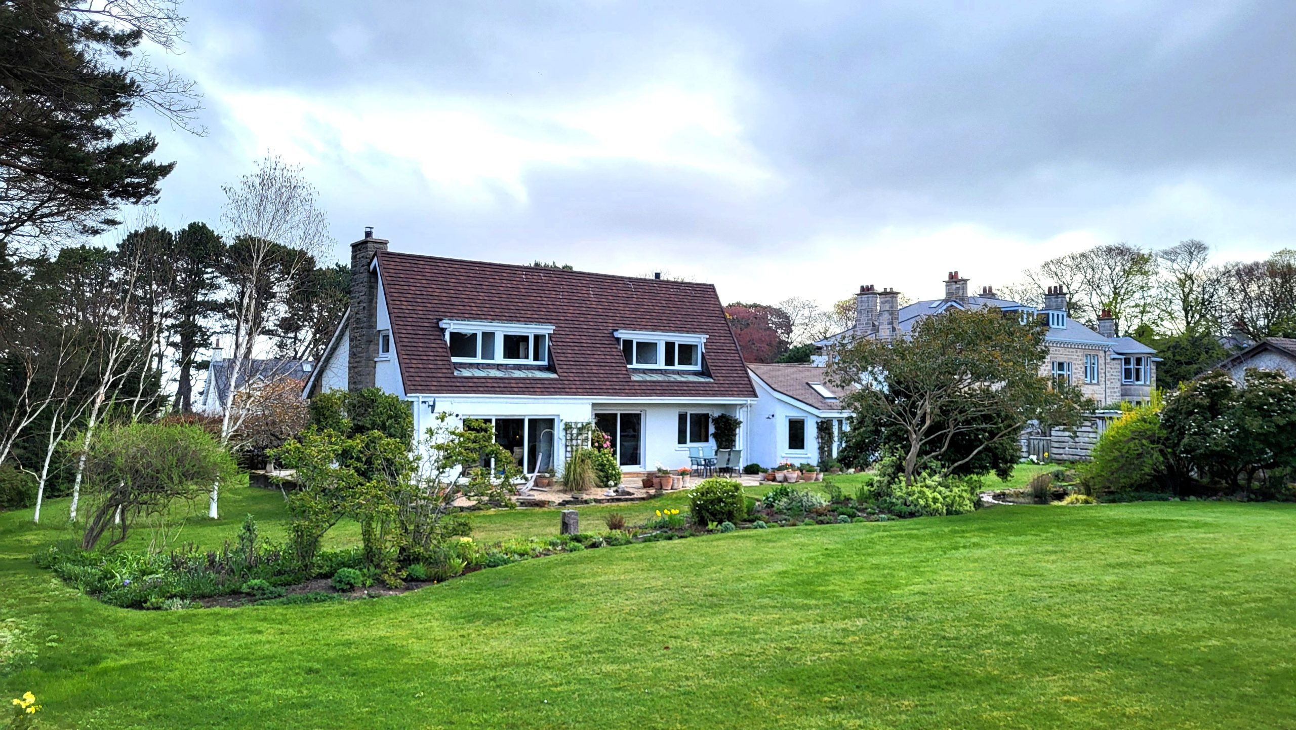 Approached via a sweeping gravel driveway, the property offers ample parking and a substantial double garage with double electric doors to the front and a single electric door to the rear providing convenient garden access. The extensive gardens are a particular highlight, being fully cultivated, mature and immaculately maintained, with sea views enjoyed from select areas of the garden as well as from some rooms within the house.
