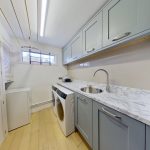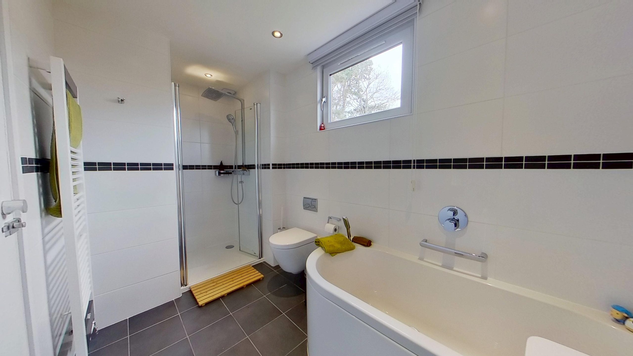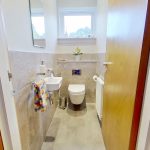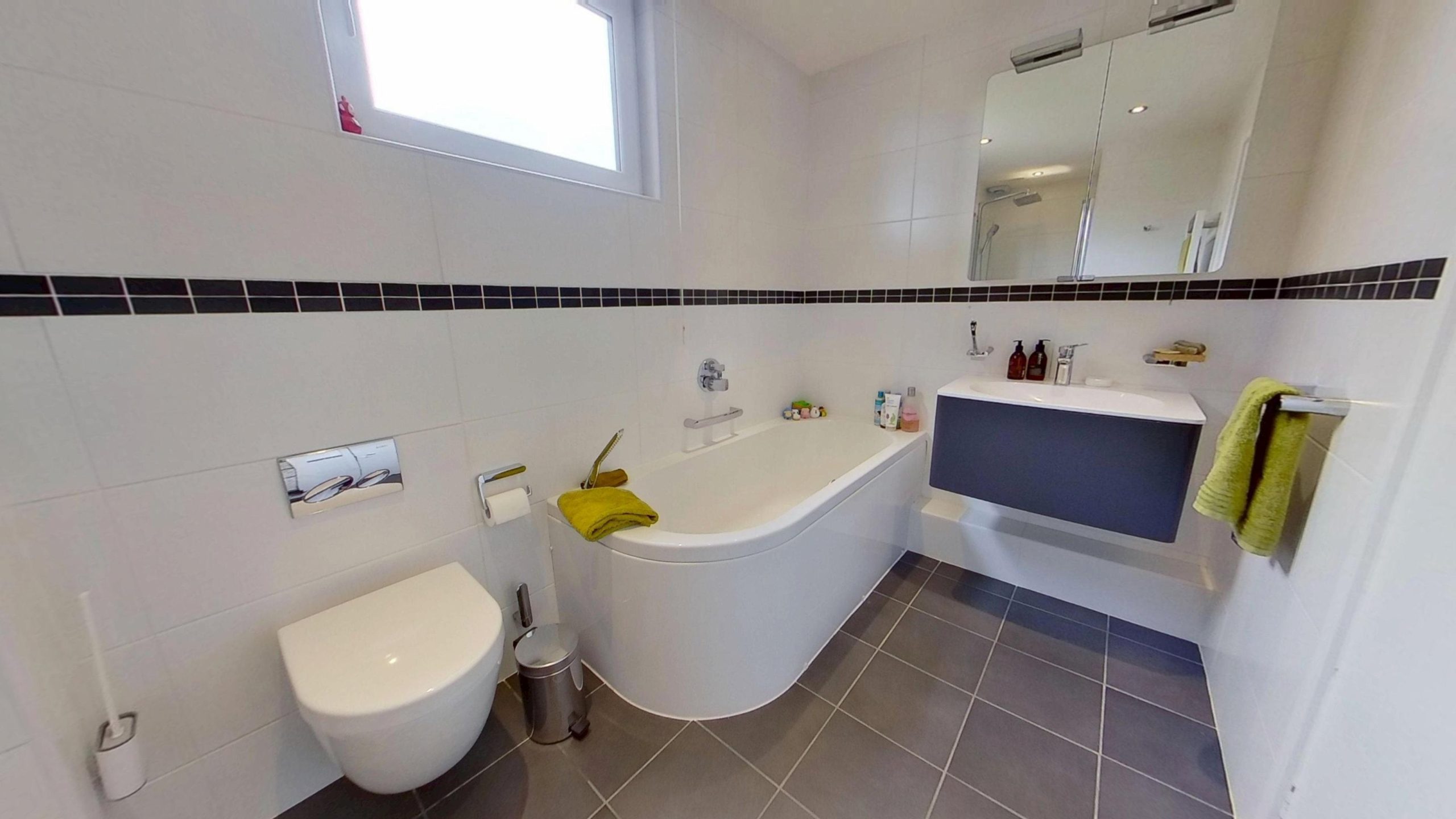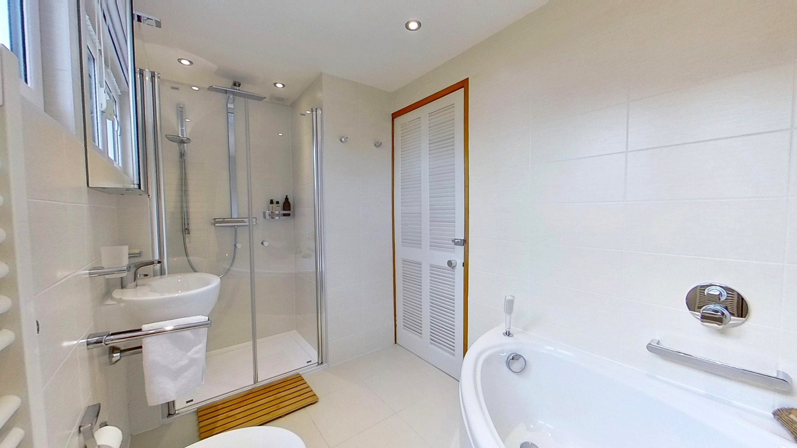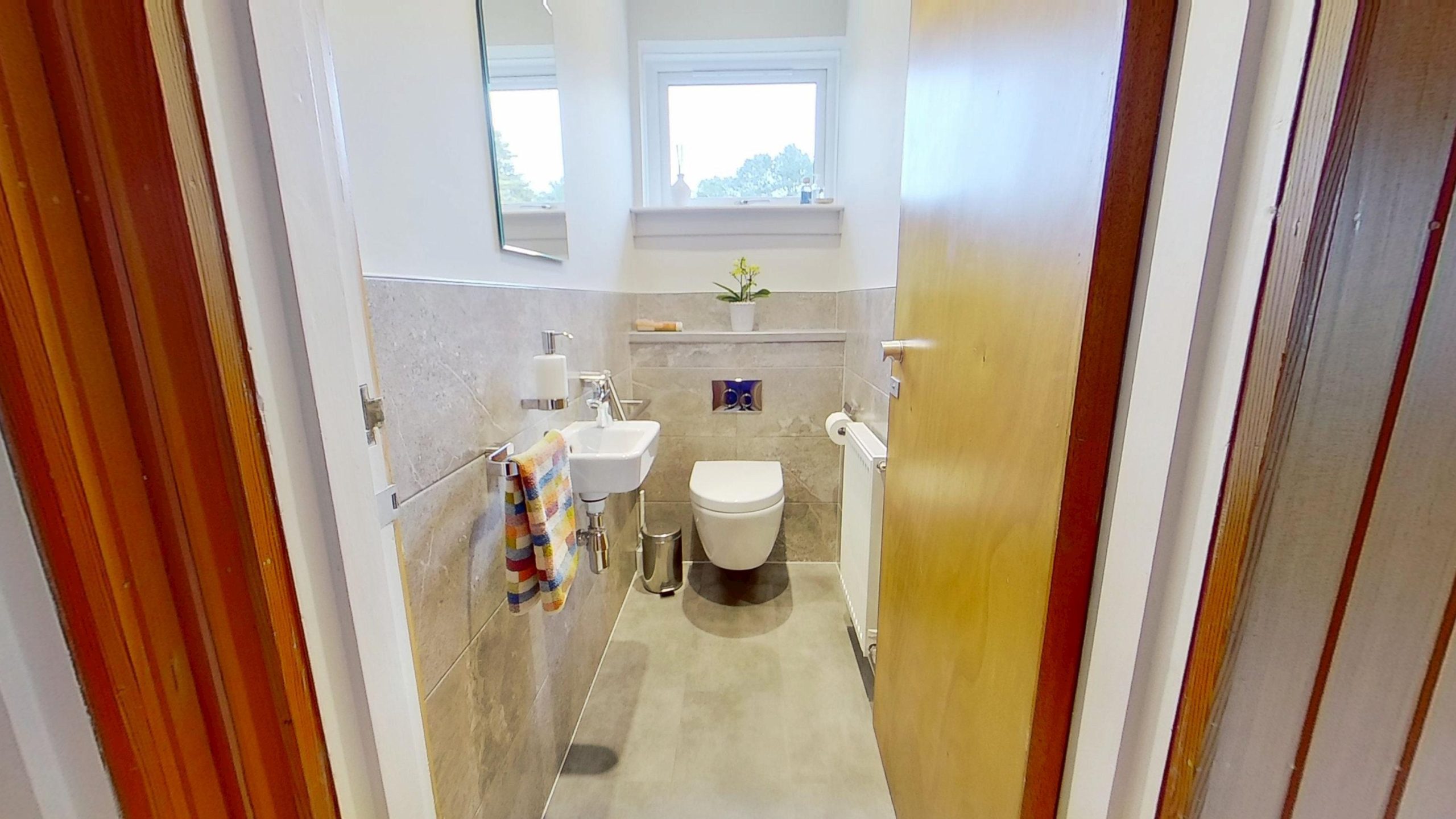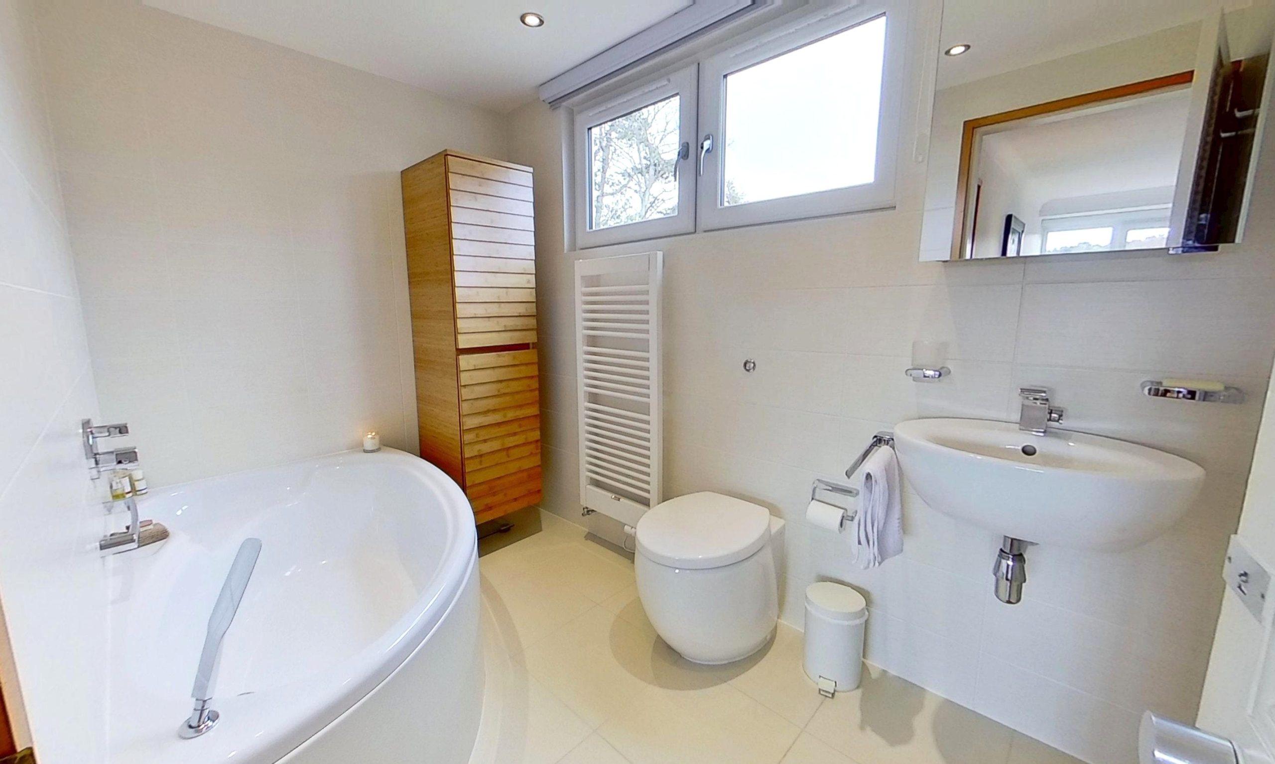 The sleek family bathroom is fitted with bath, WC, wash hand basin and shower enclosure, while a further cloakroom with WC and wash hand basin adds to the excellent family-friendly layout.